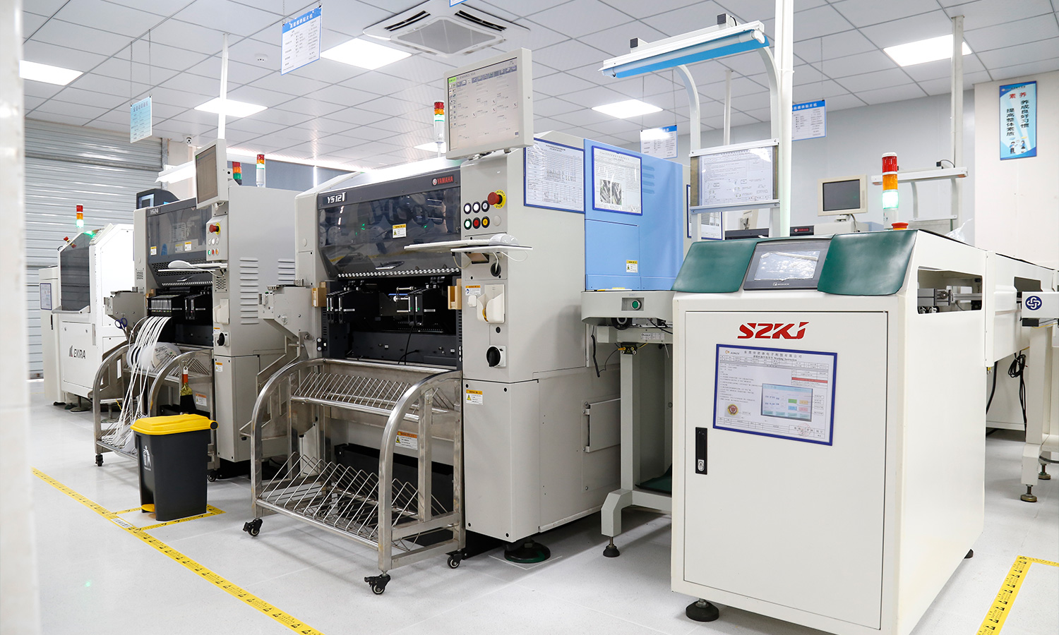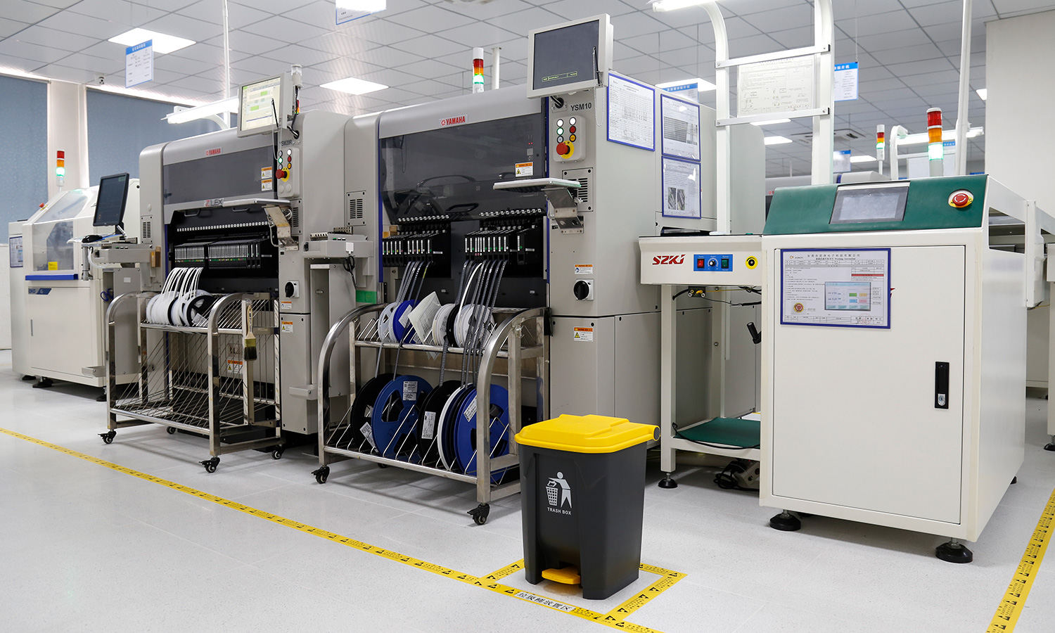 现有4条SMT贴片生产线,配备全新进口YAMAHA,YSM20R YSM10 YS24 YS12 、全自动锡膏印刷机、十温区回流炉、AOI、SPI等高端设备,贴装产能1200万点(CPH)/天,尤其擅长高精密、复杂度高的板子。