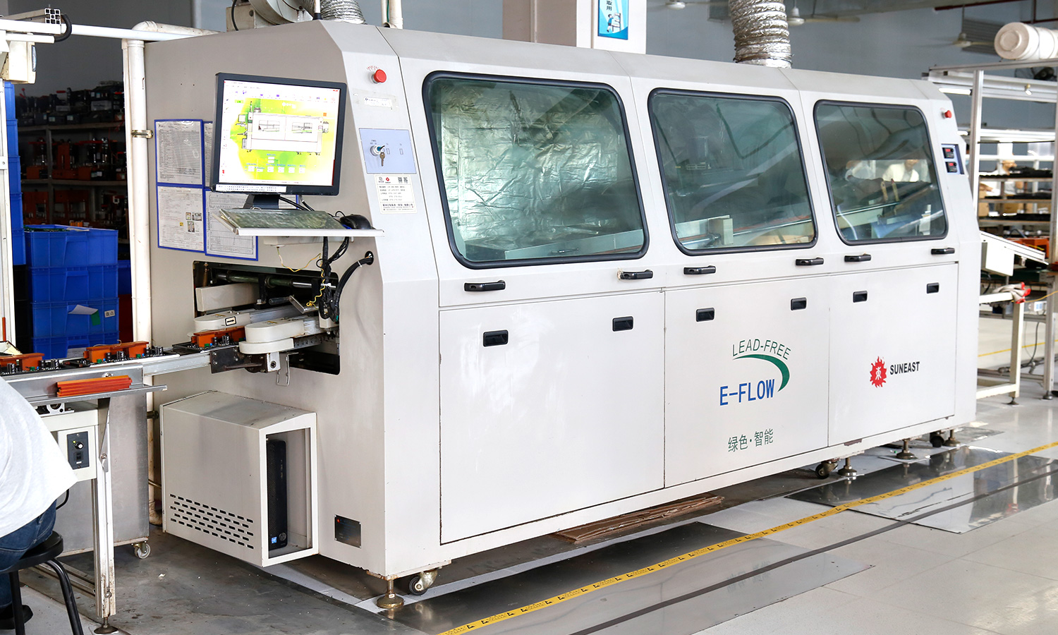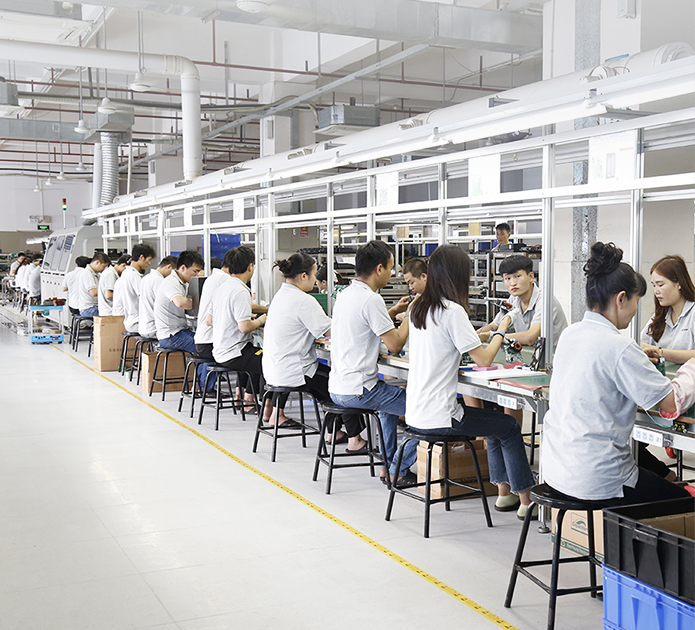 现有组装流水线2条现代化的生产线(可随时扩成4条),对太阳能控制器,逆变器,储能、工业降噪耳机、等工业产品组装经验丰富 ;能够生产绝大部分的数码电子产品,极强的综合生产能力,日产能达到1万PCS以上。防静电PVC空调车间,配备有老化房,测试房,成品测试隔音隔离房等,设备先进、完善,可进行各种产品镭雕、组装、老化、测试、包装等生产。